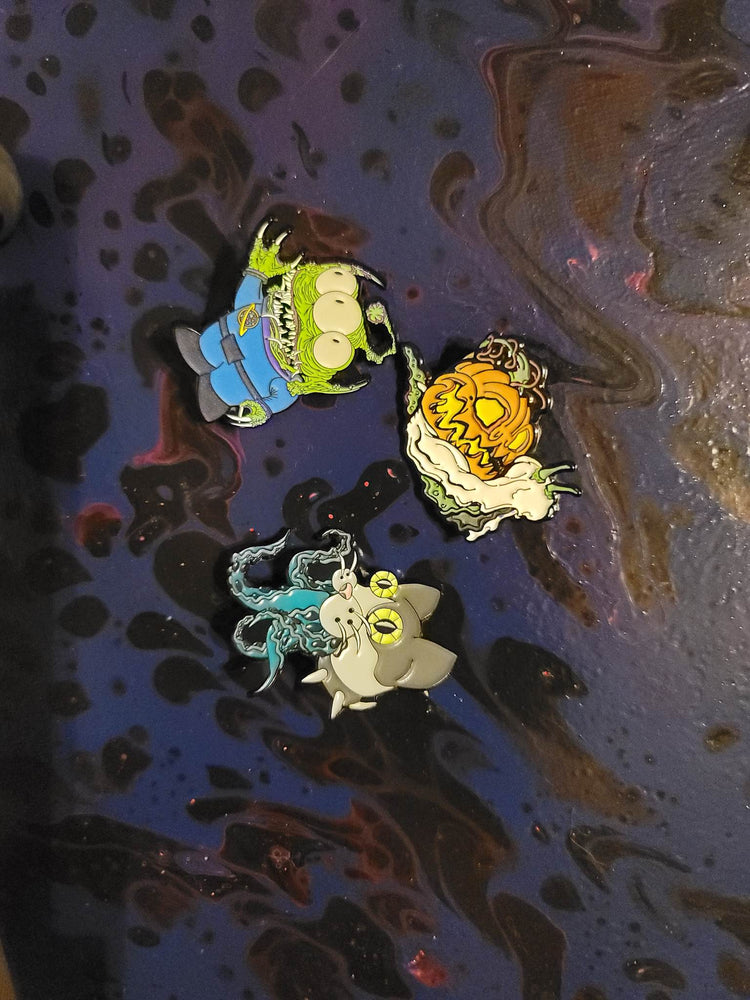 Brighten your pin collection with my glow-in-the-dark pins, blending spooky and cute vibes! Each design, hand-drawn by myself, features 2 secure butterfly clips to not be lost so easily.