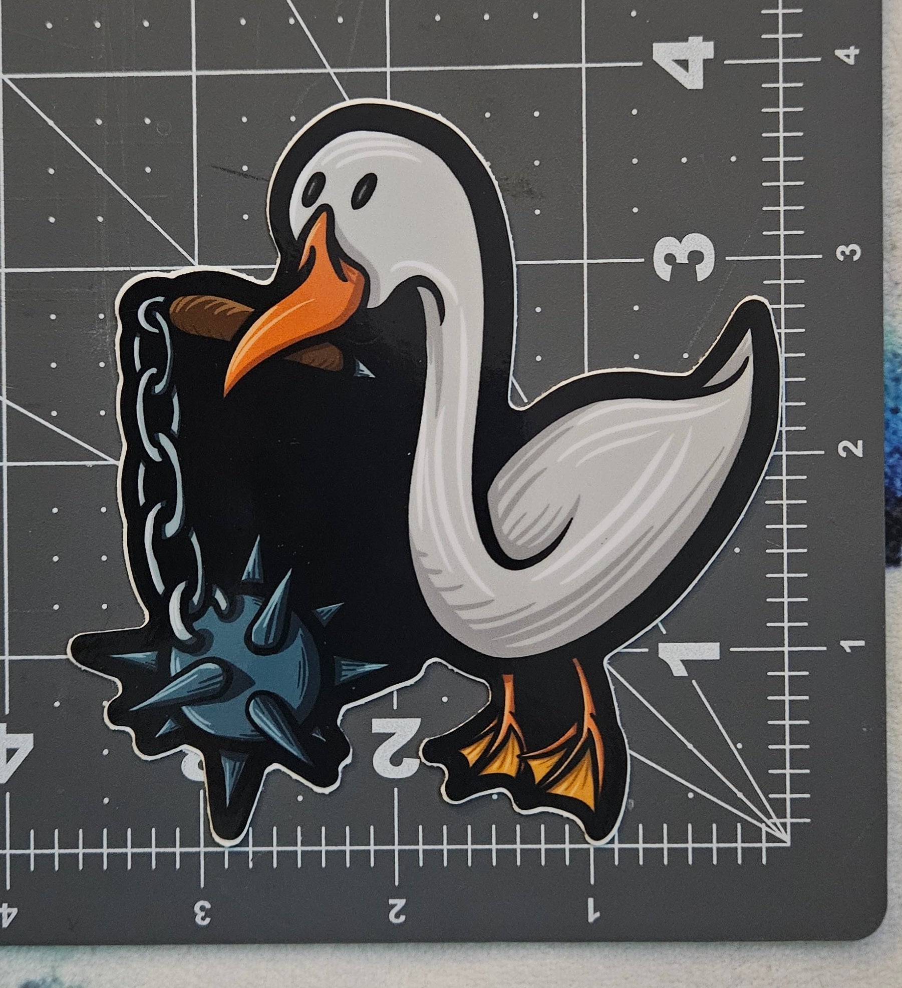 Mess with the honk, you get the bonk. My drawing of a silly goose with a flail a vinyl sticker. Decorate your water bottle, car, laptop, sticker book, or anything you like putting your stickers on with this waterproof sticker!