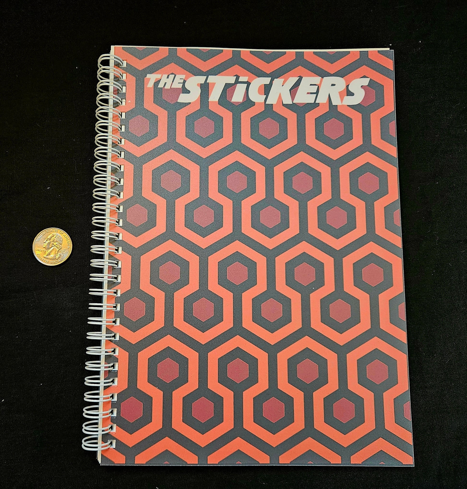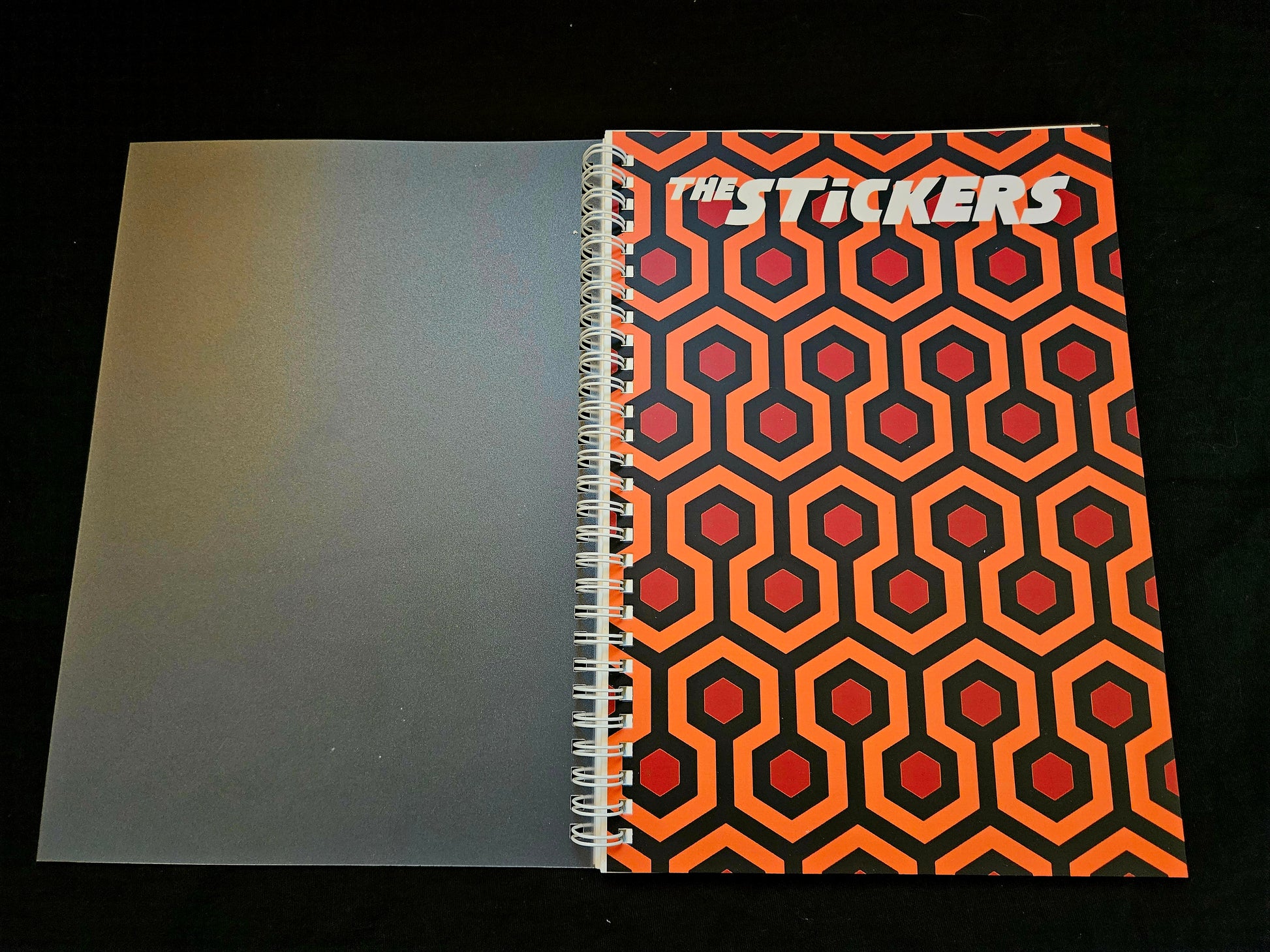 The cover and back are designed with the Shining font to say The Stickers and the carpet design (Hick's Hexagon) in the background.